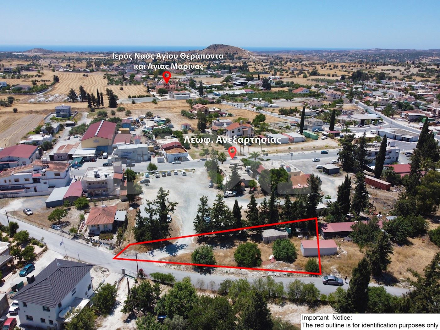 • Το ακίνητο βρίσκεται περί τα 60 μ. βόρεια της Λεωφόρου Ανεξαρτησίας, περί τα 440 μ. βόρεια της εκκλησίας Αγίου Θεράποντος και Αγίας Μαρίνας και περί τα 330