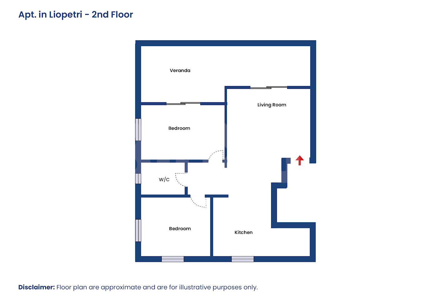 • Το διαμέρισμα αποτελείται από δύο υπνοδωμάτια, ανοικτό χώρο σαλονιού, τραπεζαρίας και  κουζίνας, ένα κυρίως μπάνιο με τουαλέτα και ακάλυπτη βεράντα.