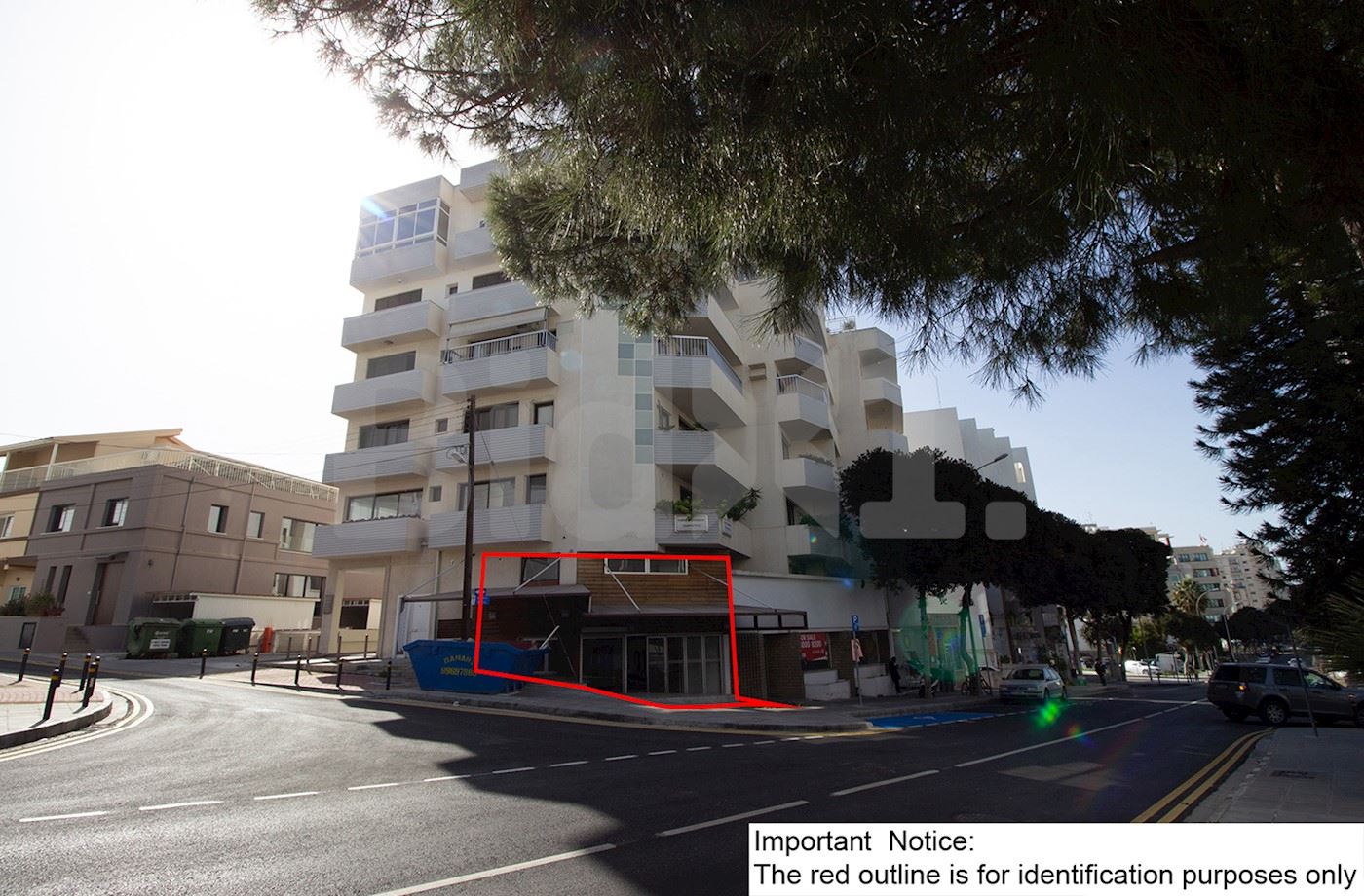 • Το ακίνητο εφάπτεται επί της Λεωφόρου Τζόν Κέννεντυ και τοποθετείται περί τα 790 μ. δυτικά από την Κεντρική Τράπεζα της Κύπρου, περί τα 200 μ. ανατολικά από την Πρεσβεία της Πολωνίας, περί τα 100 μ. νοτιοανατολικά από το Πέργαμος και περί τα 160 μ. νότια από το Ρωσικό Κέντρο Κουλτούρας.