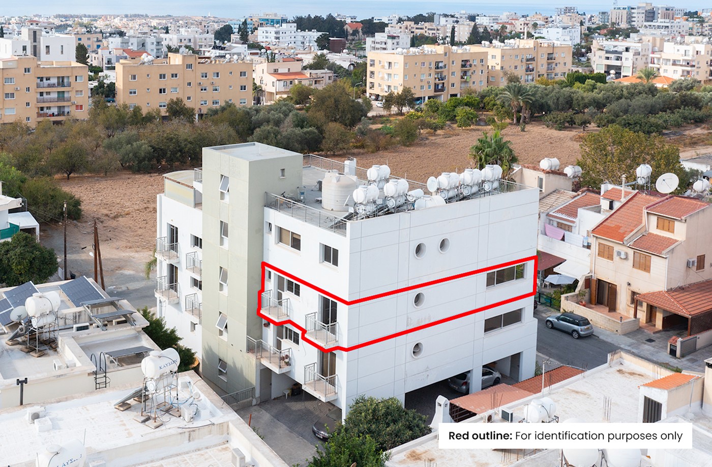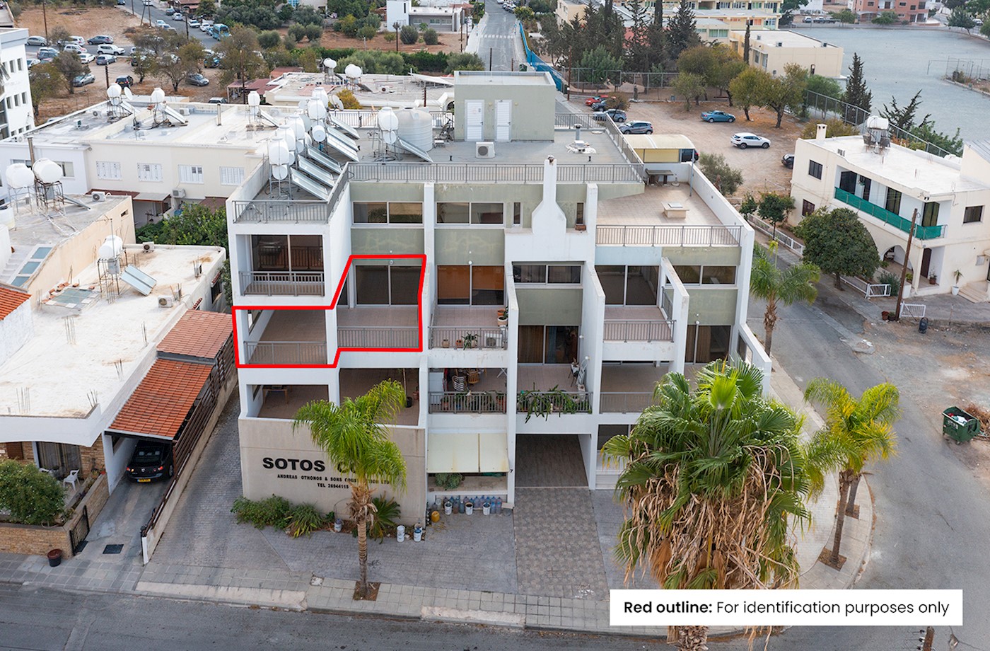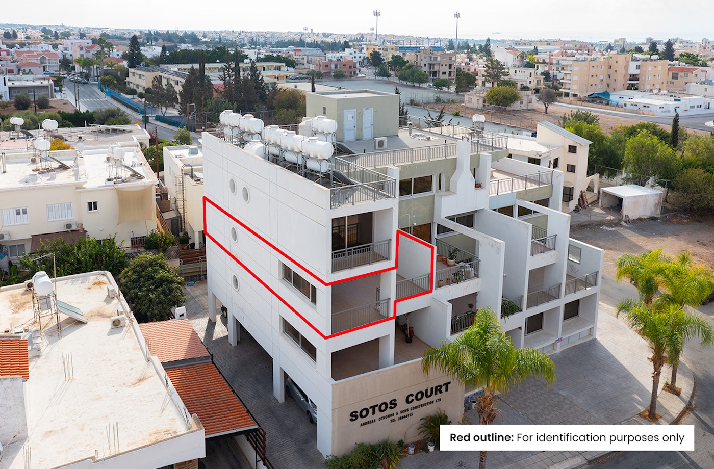 • Διαμέρισμα δύο υπνοδωματίων με αρ. θύρας 201 στην πολυκατοικία γνωστή ως ‘Sotos Court’ .
