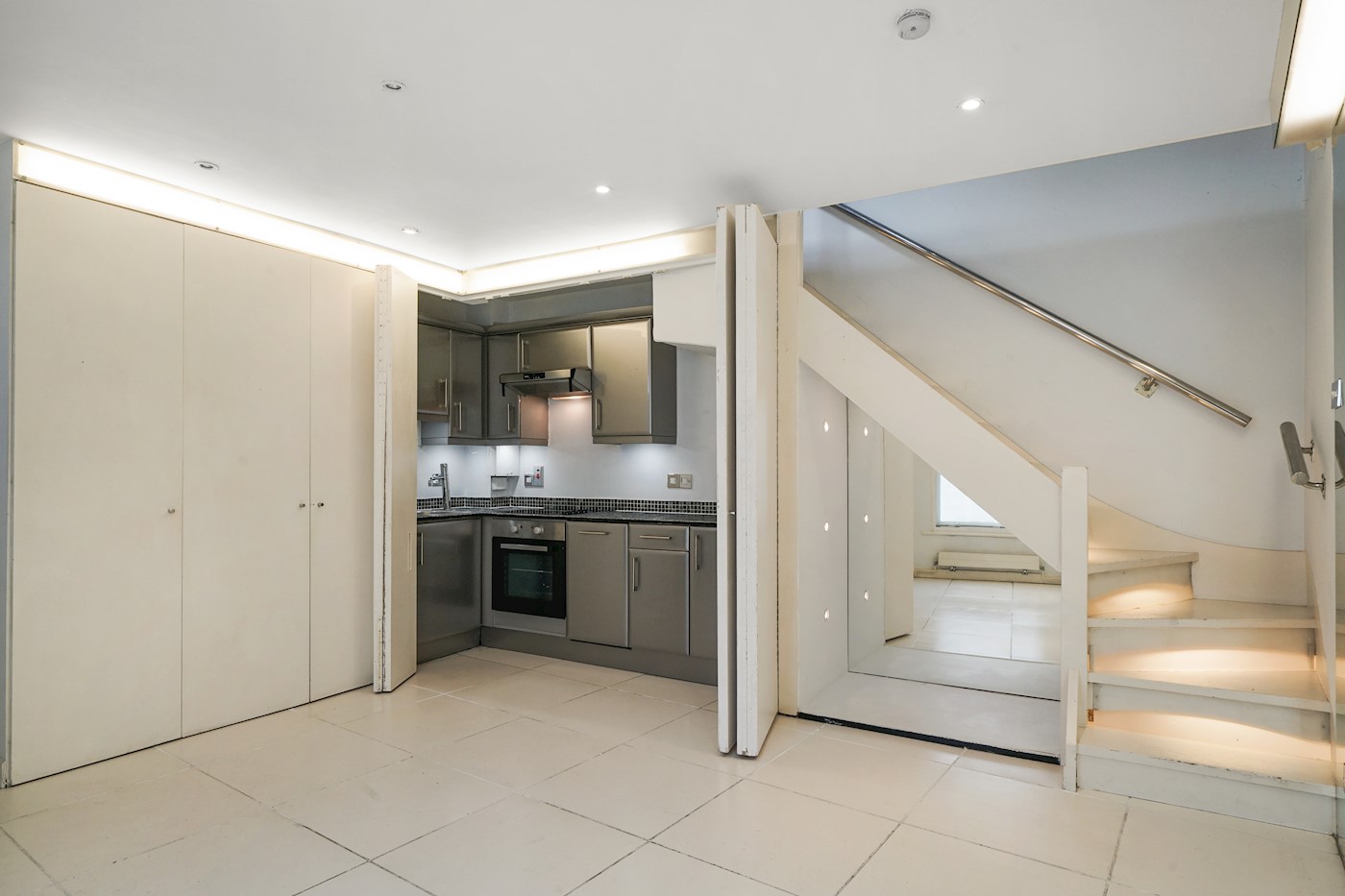 A charming and own front door property arranged as a one bedroom house over two floors with a large private garage situated in the secure gated mews behind. The ground floor of the property offers open plan living space with kitchen and above is a bright bedroom with en suite bathroom.
