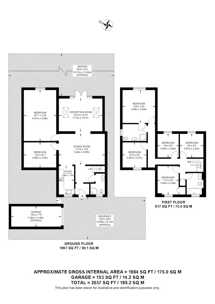 First floor: main bedroom en suite, four bedrooms and bathroom.