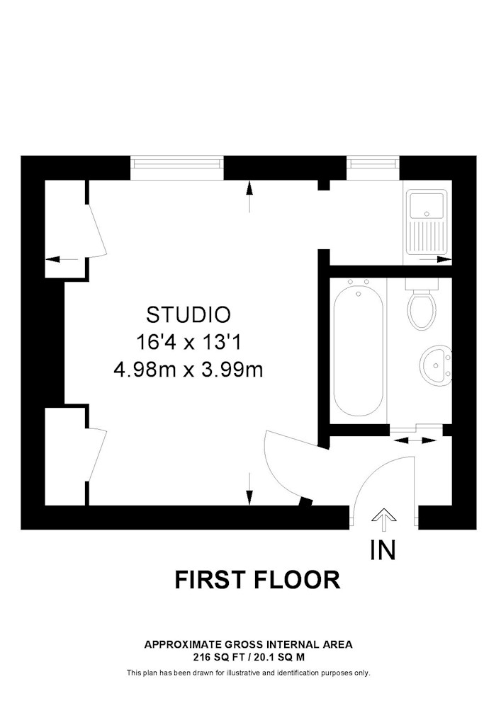 First floor: studio room, kitchen, bathroom.