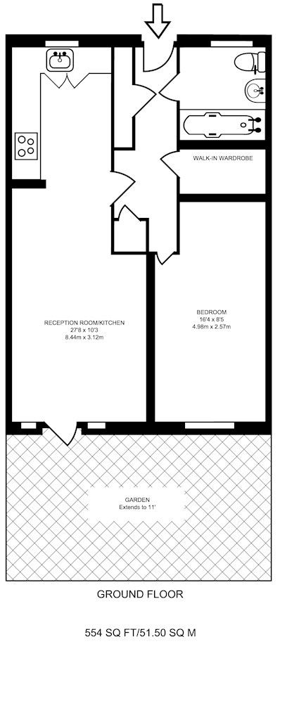 Gross internal floor area is approximately 554 Sq Ft (51.47 Sq M)