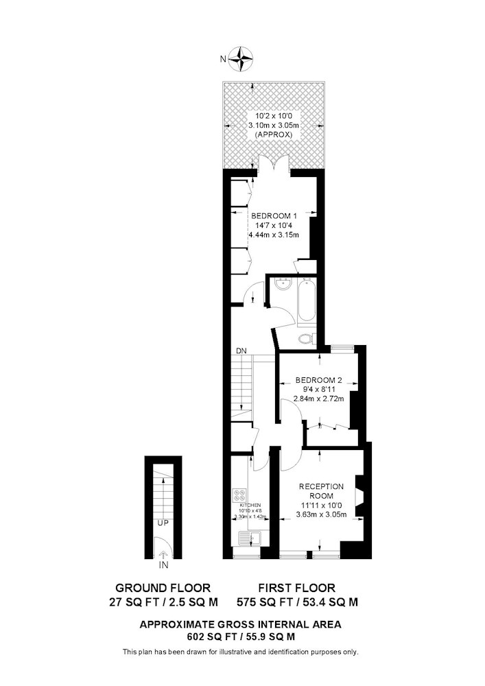 Gross internal floor area is approximately 602 Sq Ft (55.93 Sq M)