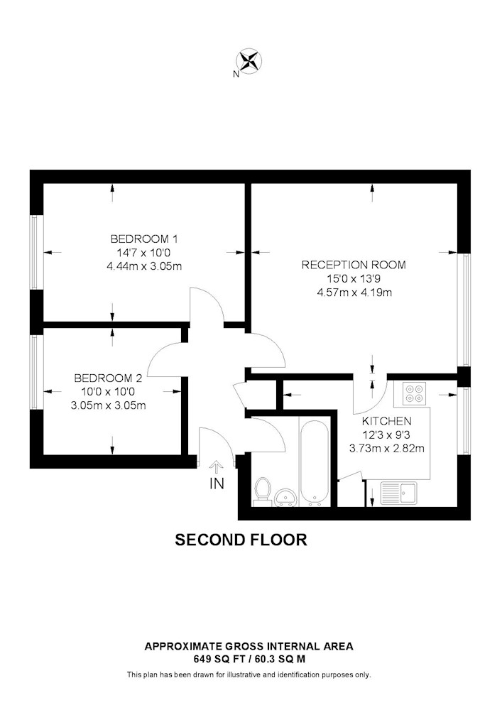 Gross internal floor area is approximately 649 Sq Ft (60.29 Sq M)
