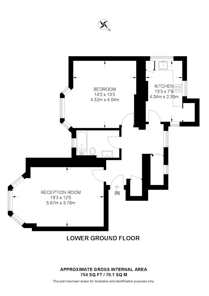 Gross internal floor area is approximately 754 Sq Ft (70.05 Sq M)