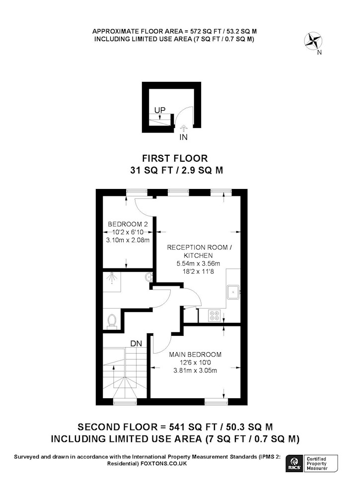 First floor: reception room/kitchen, two bedrooms and shower-room.