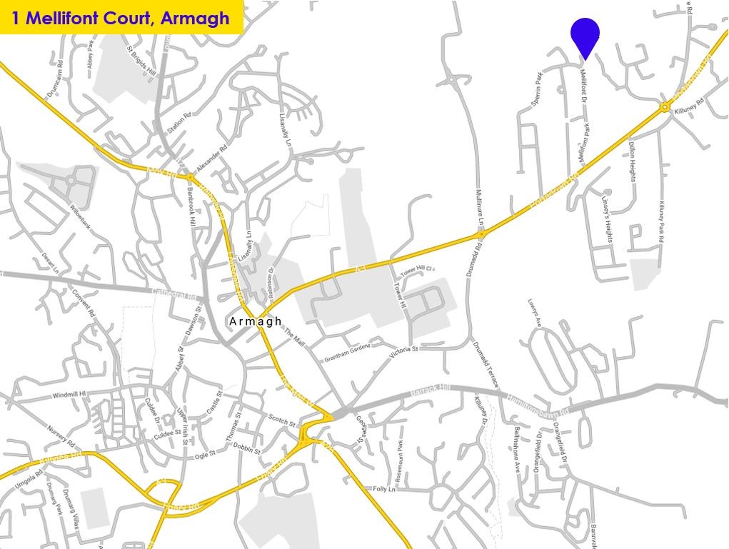 Situated on a quiet residential cul-de-sac off Mellifont Park. Shopping amenities are found in Armagh, approximately 1 mile away, which is accessed via the nearby Portadown Road (A3).
