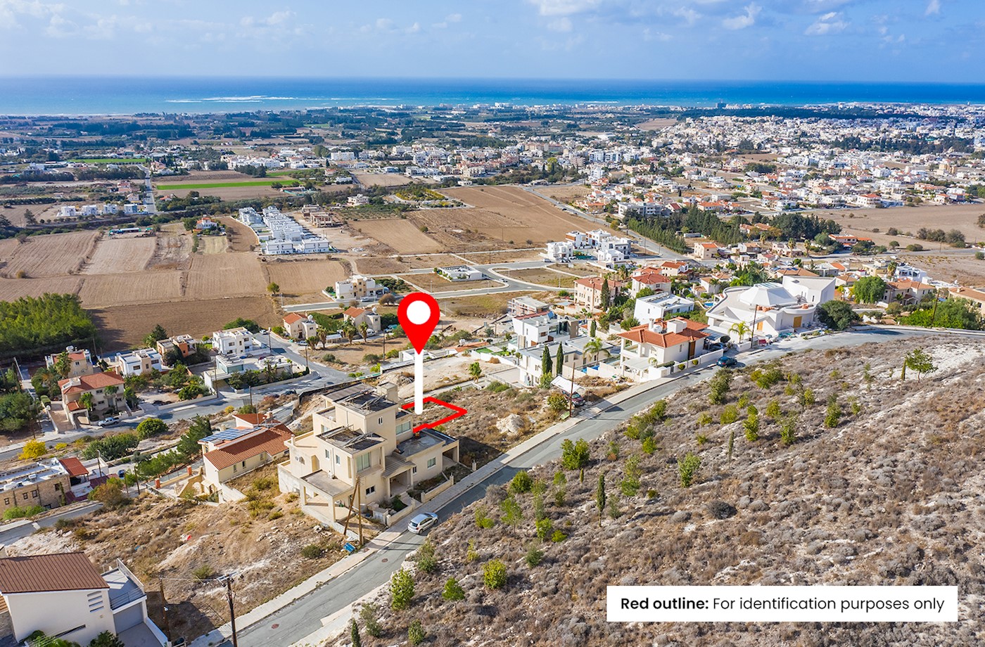 • The property is located in Geroskipou Municipality, Paphos District, with far distance sea view, under Reg.No. 0/10118.