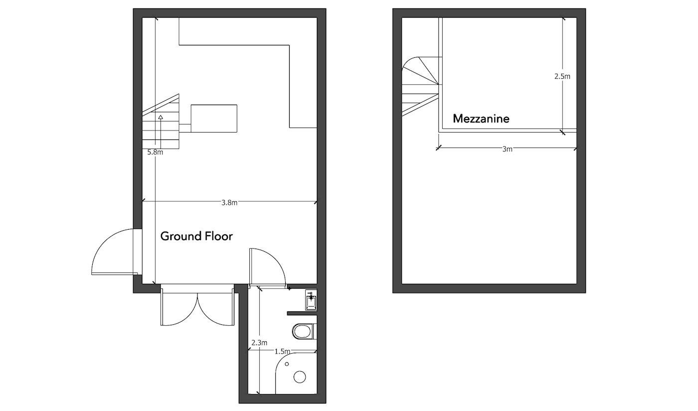 2A Howden Street | Ground floor office 22.04 sq m (237 sq ft) Shower/WC 3.45 sq m (37 sq ft) Mezzanine 7.5 sq m (81 sq ft) |