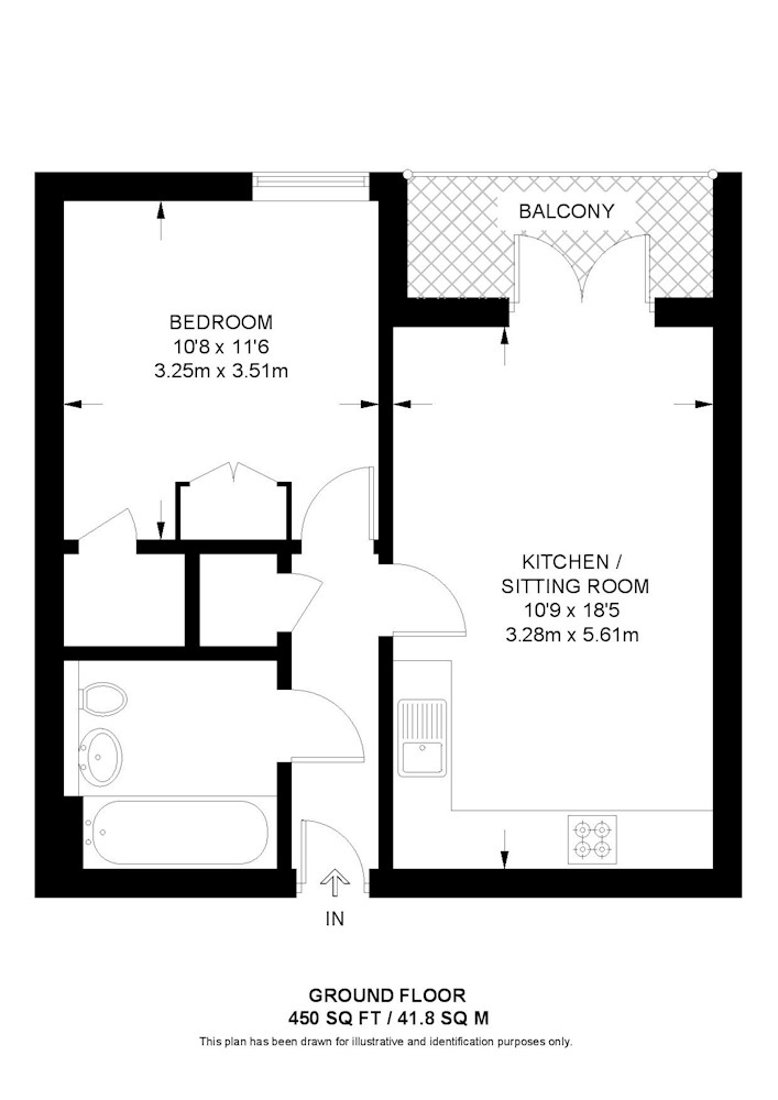 First floor: reception room/kitchen, bedroom, bathroom, balcony.