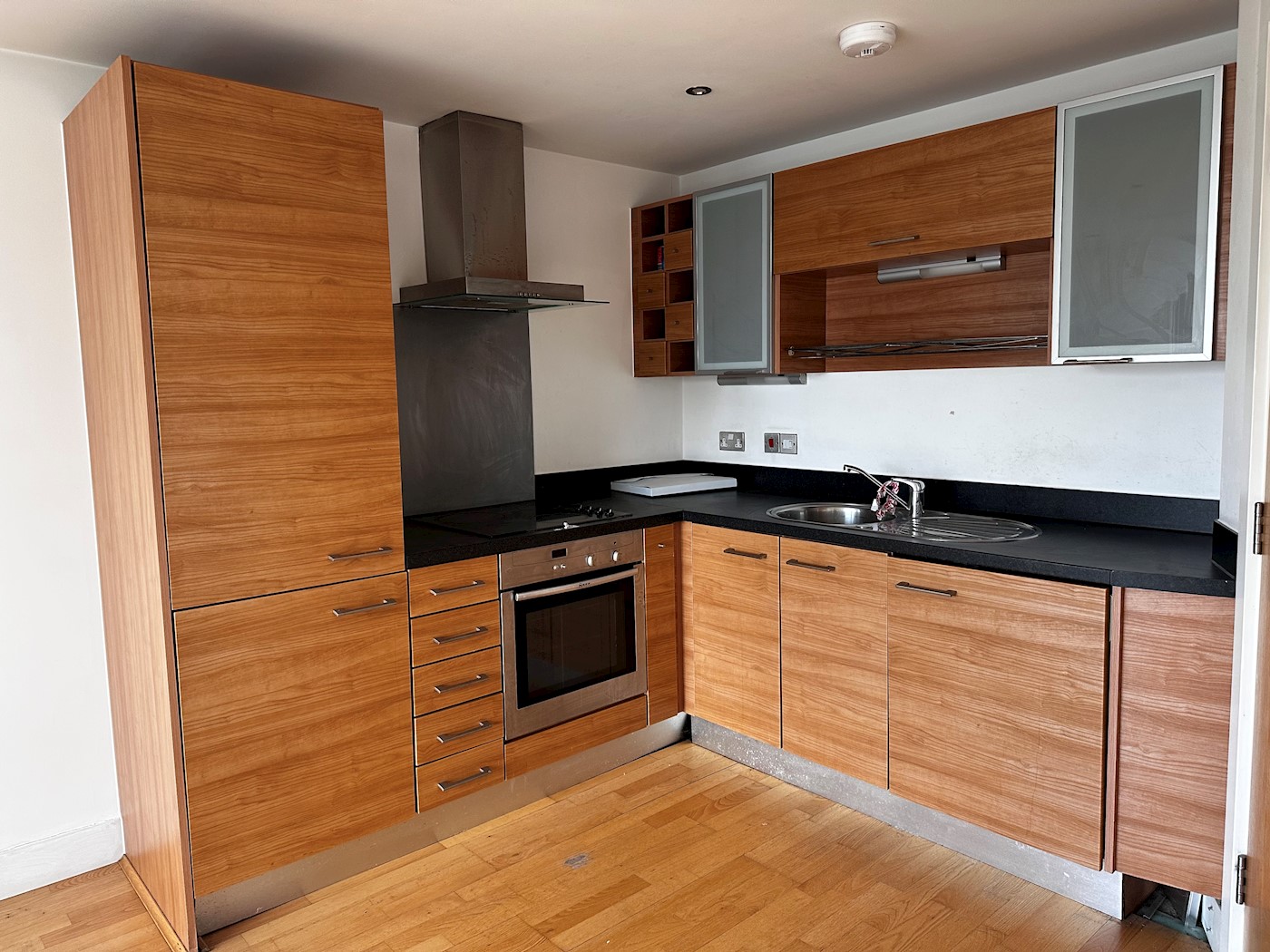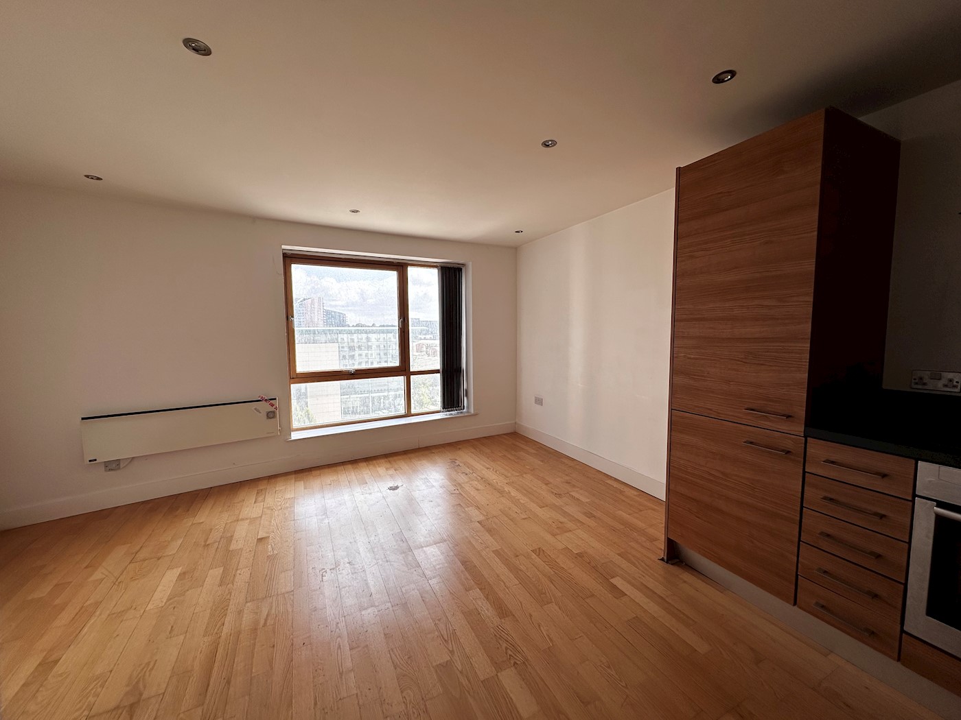A one bedroom apartment, situated on the fourth floor of a modern residential building.