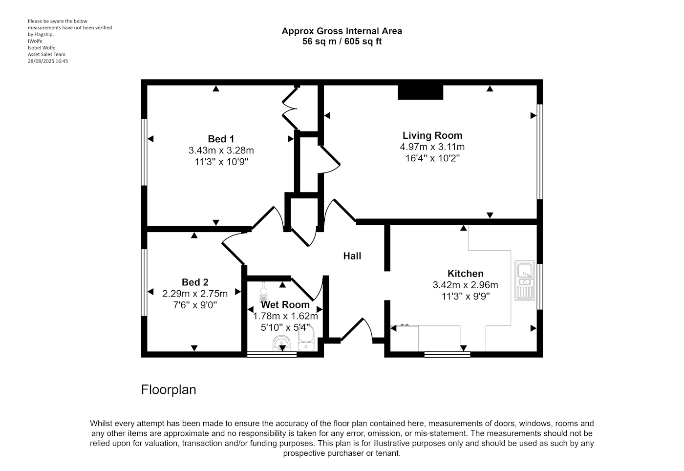 A semi-detached bungalow on a corner plot comprising two bedrooms, reception room, kitchen, wet room/WC. There are front and rear gardens along with off street parking and a rear outbuilding. GIA approximately 56 sq.m (605 sq.ft)