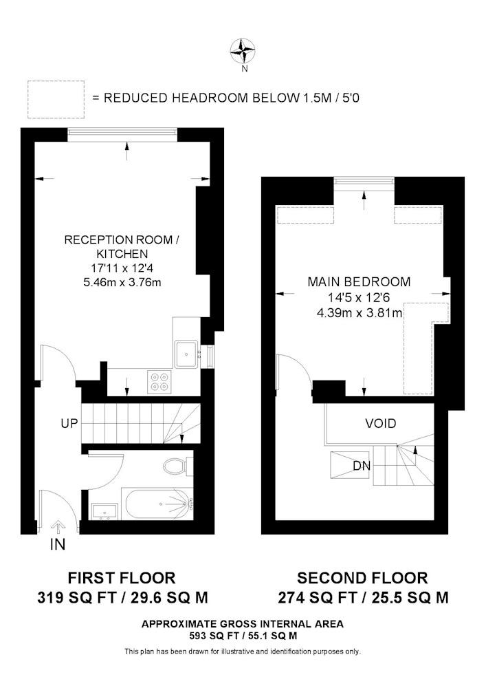 First floor: reception room/kitchen, bathroom.