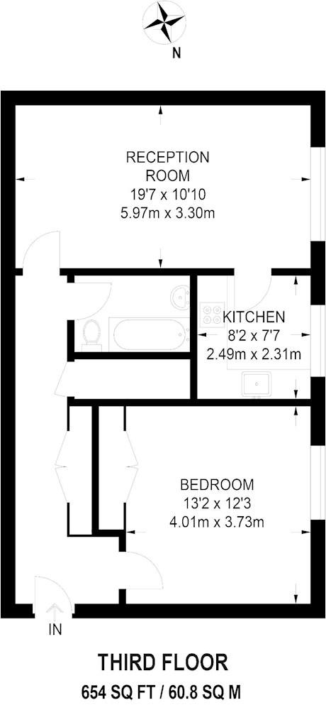 Gross internal floor area is approximately 654 Sq Ft (60.76 Sq M)