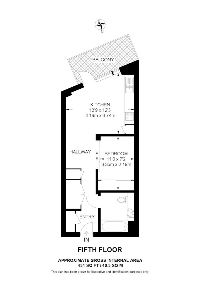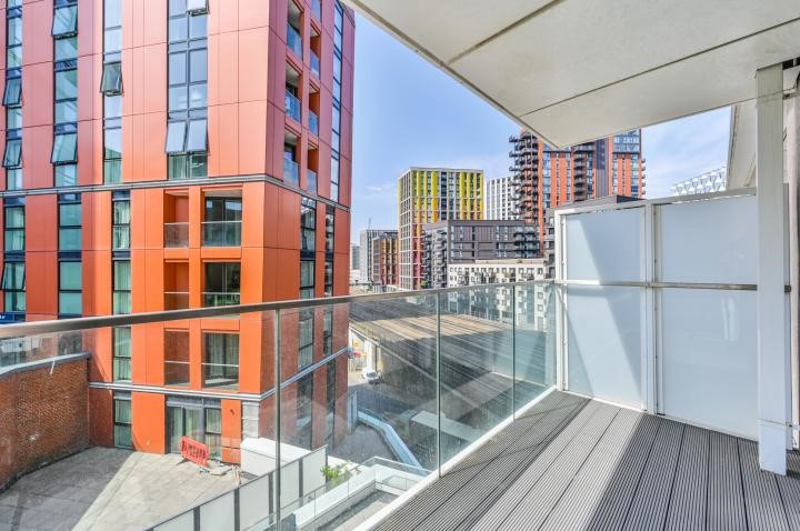 This amazing fifth floor studio apartment offers one double bedroom with built-in wardrobes, spacious open-plan reception with a modern integrated kitchen, and a lovely private balcony over looking the communal roof garden.