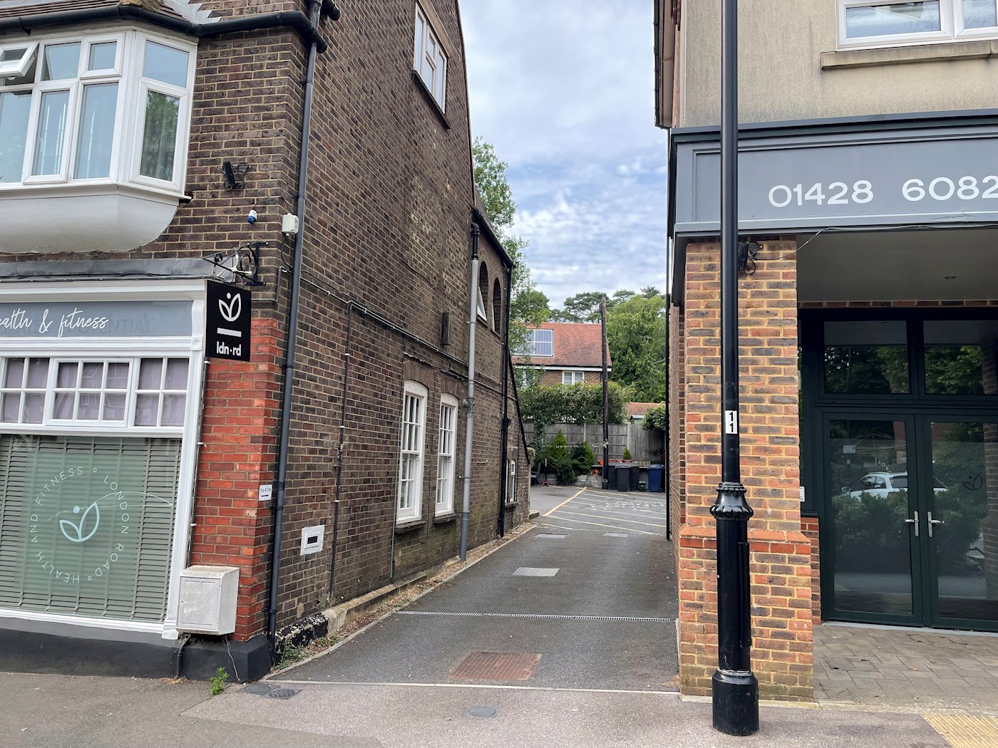 The site is located on the north side of London Road, accessed next to No.15, with the site being located in the top left hand corner of the car park.