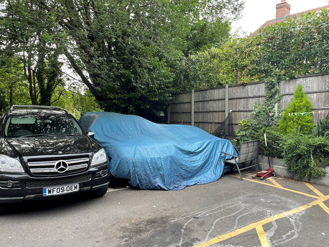 A small square site of about 7.77 sq m (84 sq ft). The site is flat, tarmaced and forms part of a larger car parking area.