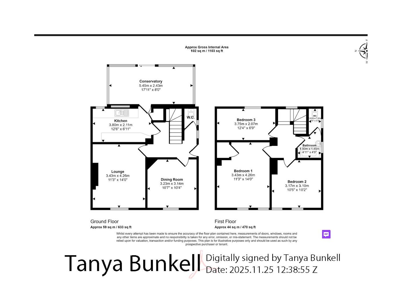 A two floor semi-detached house comprising three bedrooms and bathroom/wc on the first floor with reception room, dining room, kitchen, conservayory and separate wc on the ground floor. The property benefits from off street parking, front and rear gardens. GIA approximately 102 sq.m (1103 sq.ft)