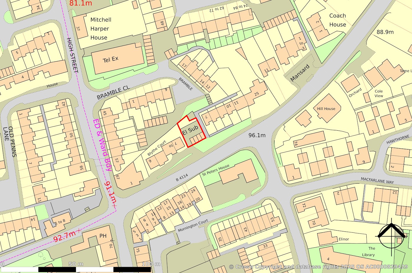 The garage/site is located on the north side of Blythe Road, beween the High Street and Church Hill in a residential area.