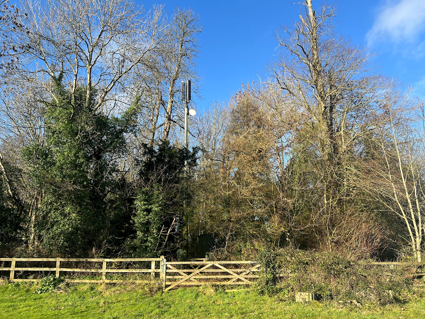 Three adjacent parcels of woodland totalling approximately 2.79 hectares (6.89 acres). In in the north east portion of the site there is a telecoms mast. The site is not connected to the adjacent Hartham Park Estate.