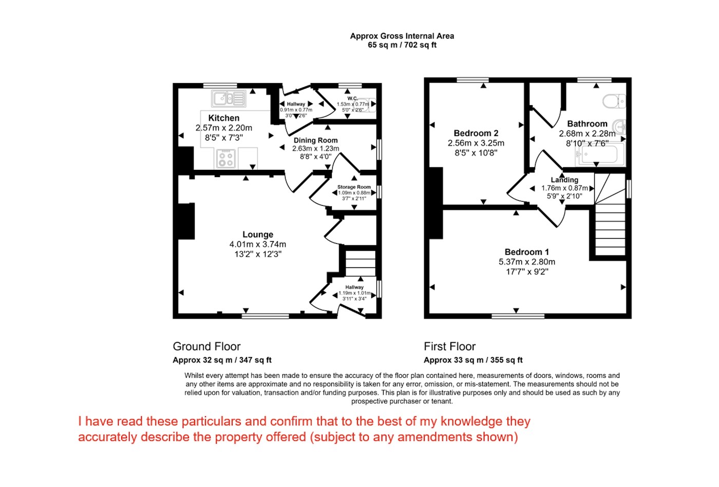 First floor: Two bedrooms, bathroom/wc