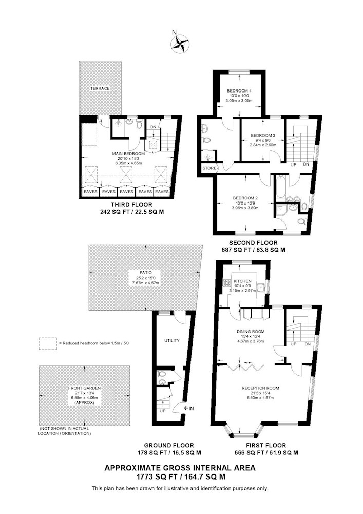 Third floor: bedroom, en-suite shower room, terrace.