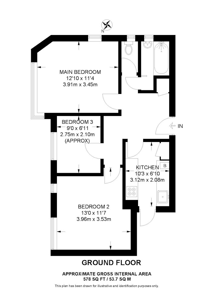 Gross internal floor area is approximately 578 Sq Ft (53.70 Sq M)