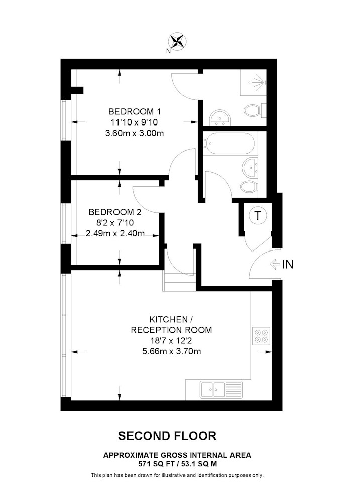 Gross internal floor area is approximately 571 Sq Ft (53.05 Sq M)