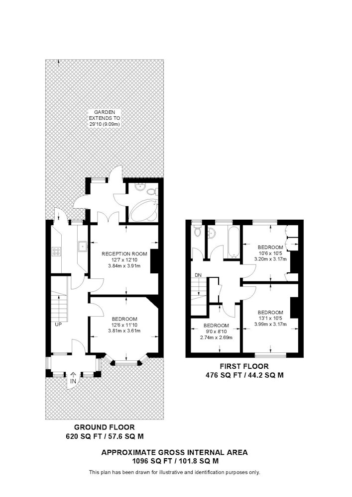 Ground floor: reception room, kitchen, bedroom and bathroom.