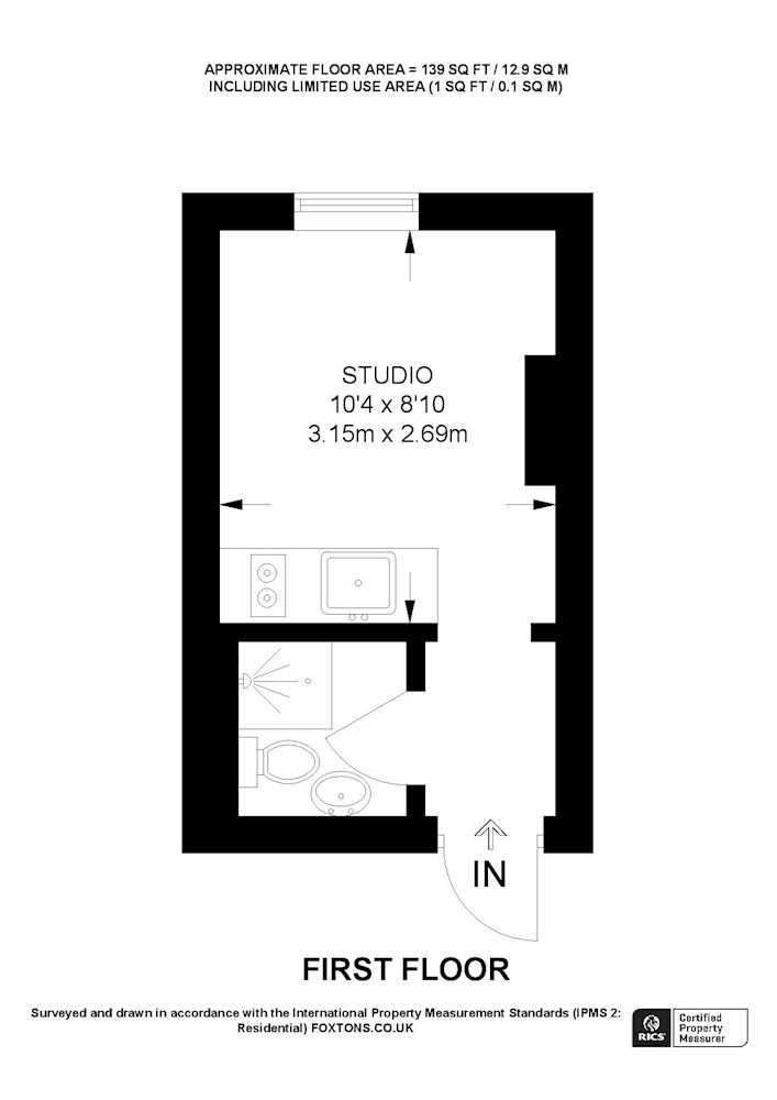 Gross internal floor area is approximately 139 Sq Ft (12.91 Sq M)