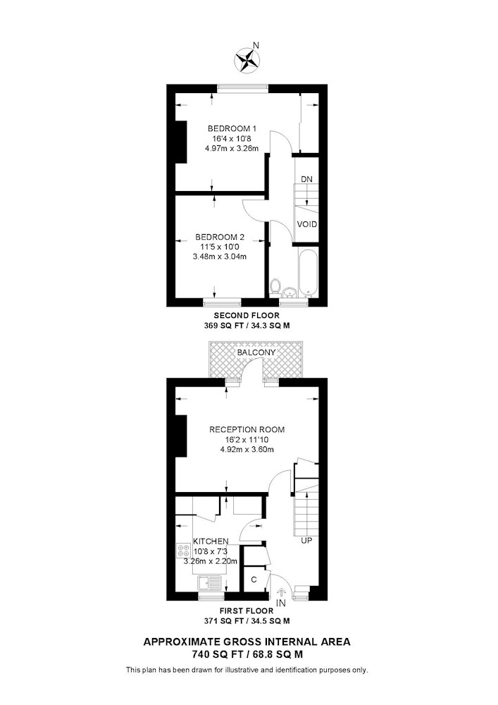 Gross internal floor area is approximately 740 Sq Ft (68.75 Sq M)