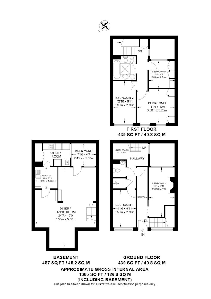 Gross internal floor area is approximately 1365 Sq Ft (126.8 Sq M)