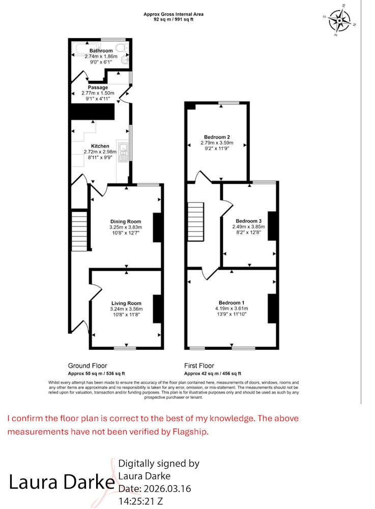A two floor mid-terrace house comprising three bedrooms on the first floor with reception room, dining room, kitchen and bathroom/wc on the ground floor. The property benefits from a rear garden. GIA approximately 92 sq.m (991 sq.ft)