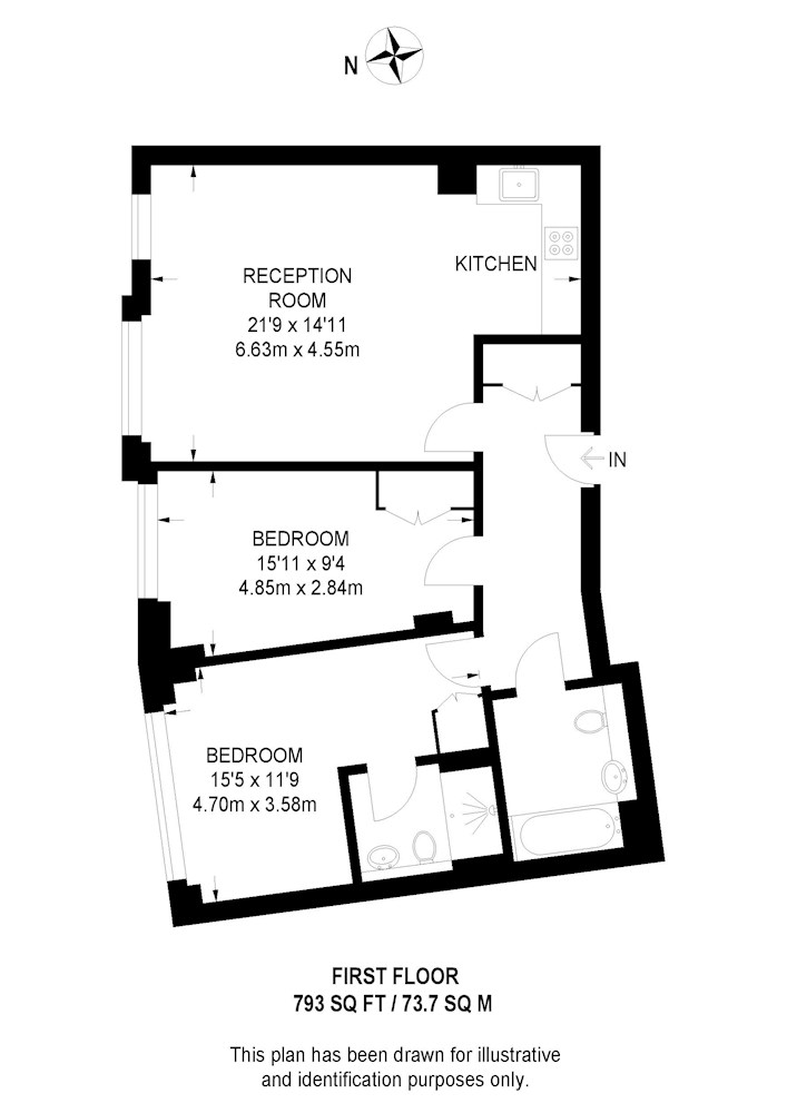 Gross internal floor area is approximately 793 Sq Ft (73.67 Sq M)
