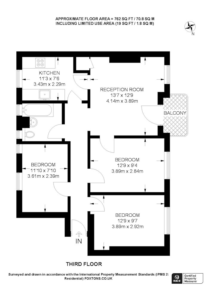 Gross internal floor area is approximately 762 Sq Ft (70.79 Sq M)