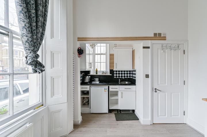 Well-sized studio flat in a prime location, offering generous lateral space and a bright reception room, open-plan kitchen in a prime location.