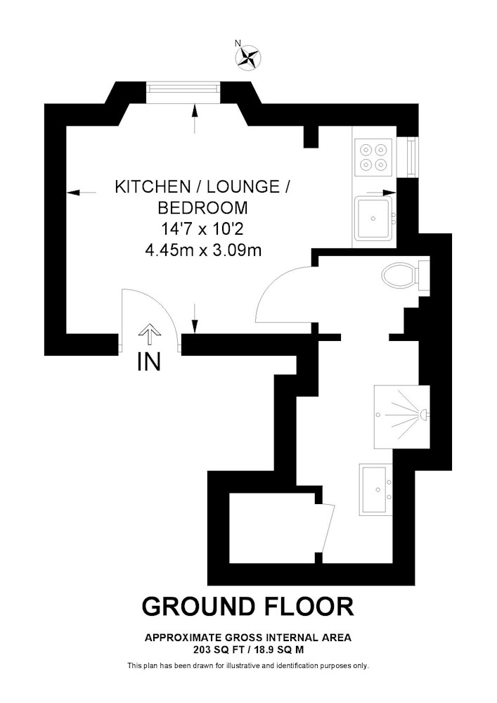 Gross internal floor area is approximately 203 Sq Ft (18.86 Sq M)