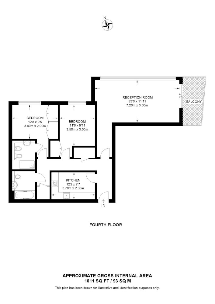 Gross internal floor area is approximately 1,011 Sq Ft (93.92 Sq M)