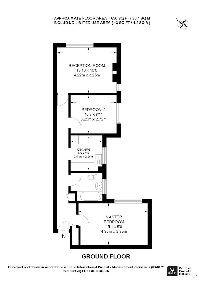 Gross internal floor area is approximately 650 Sq Ft (60.39 Sq M)
