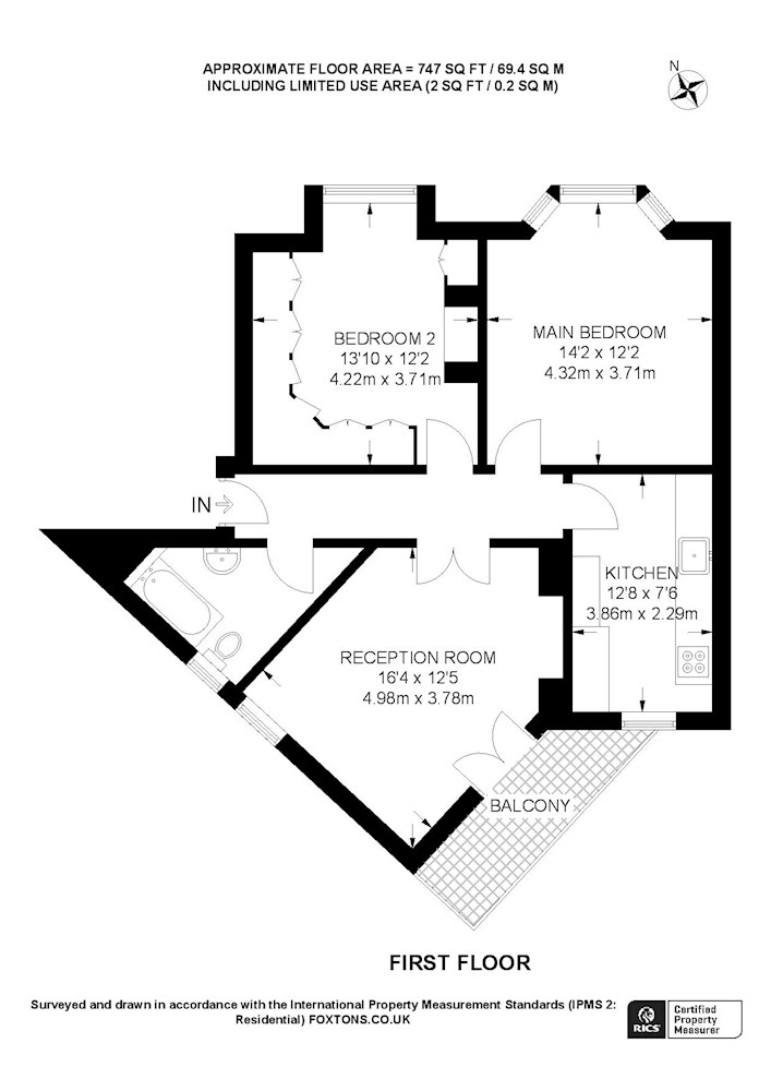 Gross internal floor area is approximately 747 Sq Ft (69.40 Sq M)