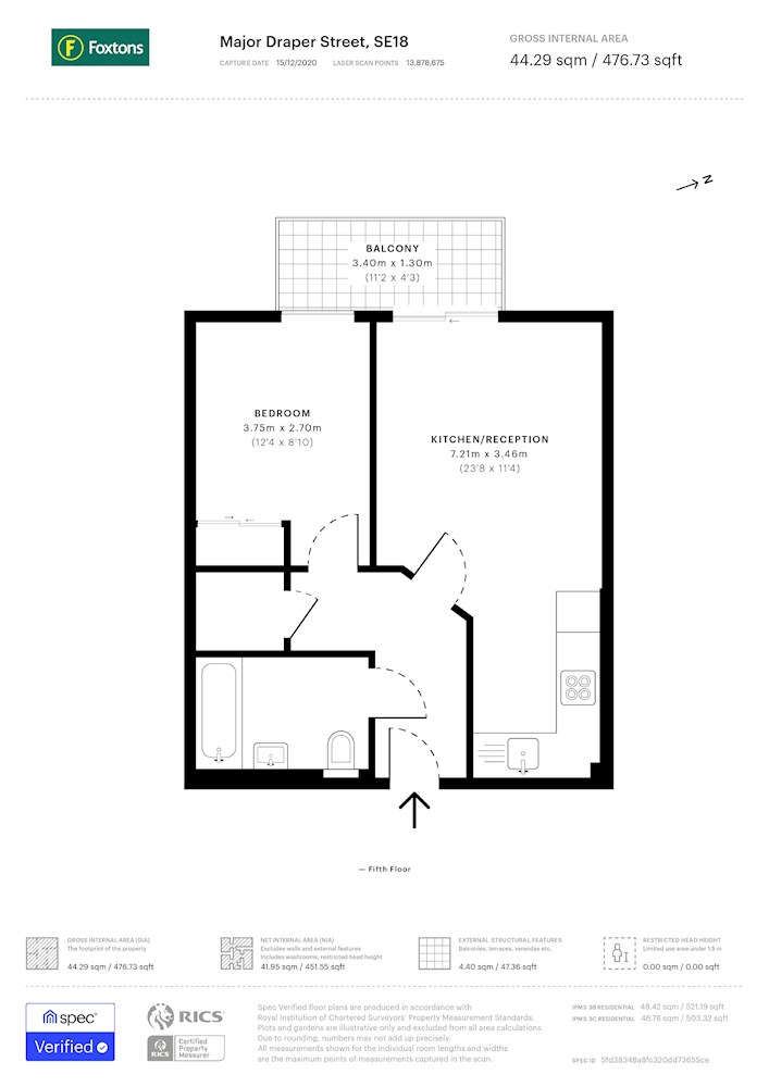 Gross internal floor area is approximately 476 Sq Ft (44.22 Sq M)