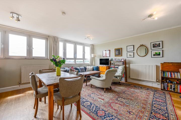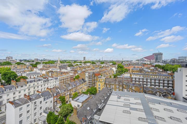 Charming one bedroom flat offers bright and spacious interiors with a private terrace, wooden floors, access to a lift, ample storage and amazing views of Central London.