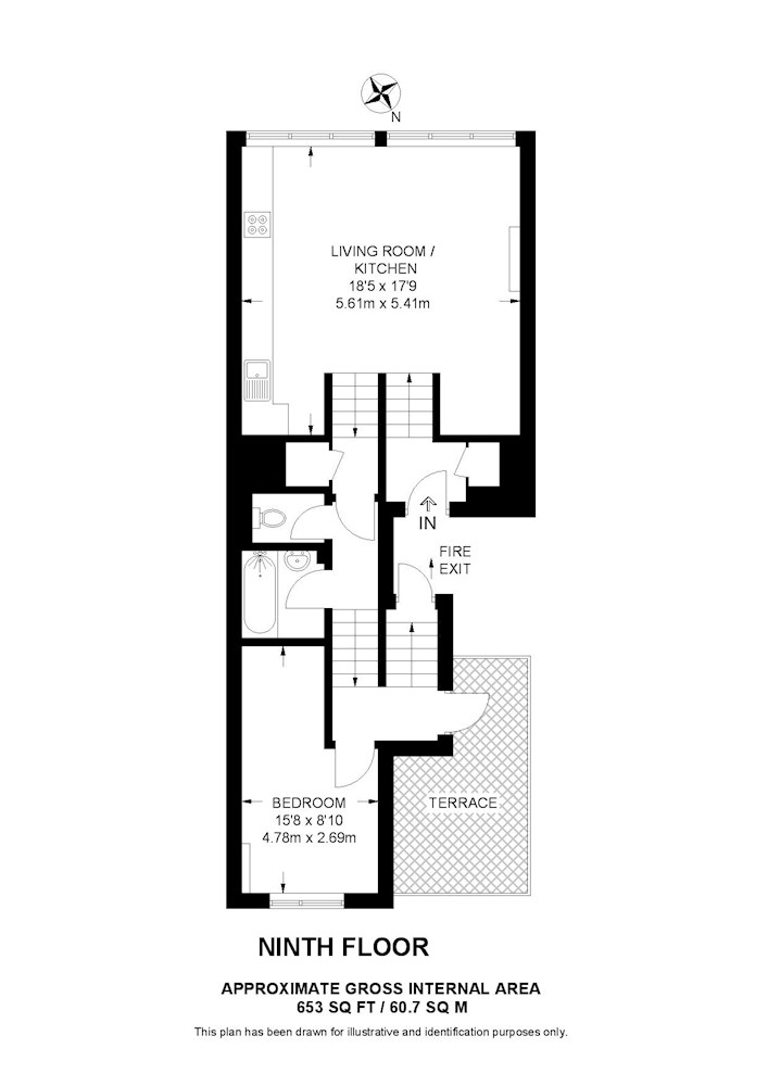 Gross internal floor area is approximately 653 Sq Ft (60.67 Sq M)