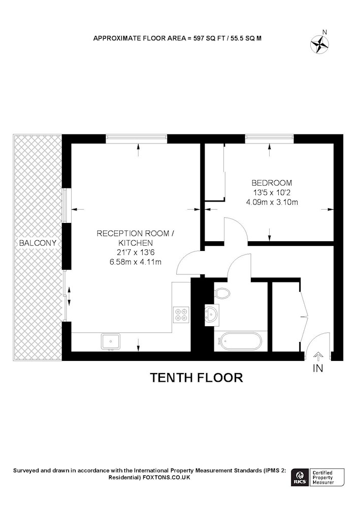 Gross internal floor area is approximately 597 Sq Ft (55.46 Sq M)