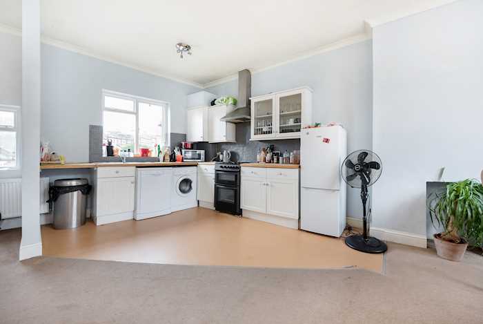 A spacious first floor two bedroom flat with access via a private staircase. The accommodation provides a spacious open plan and dual aspect reception and dining room incorporating a Shaker style kitchen. There are two double bedrooms and a shower room/WC.