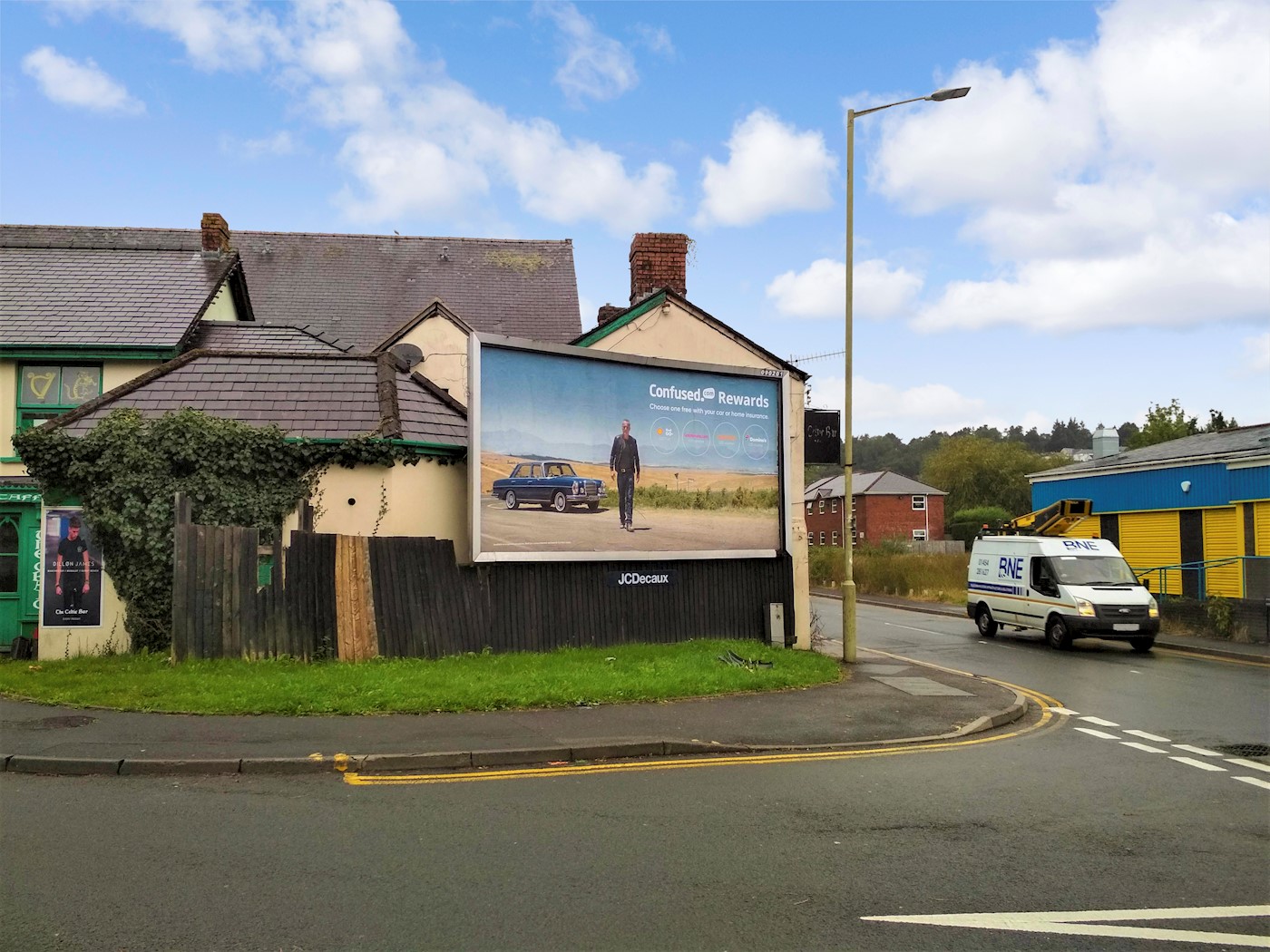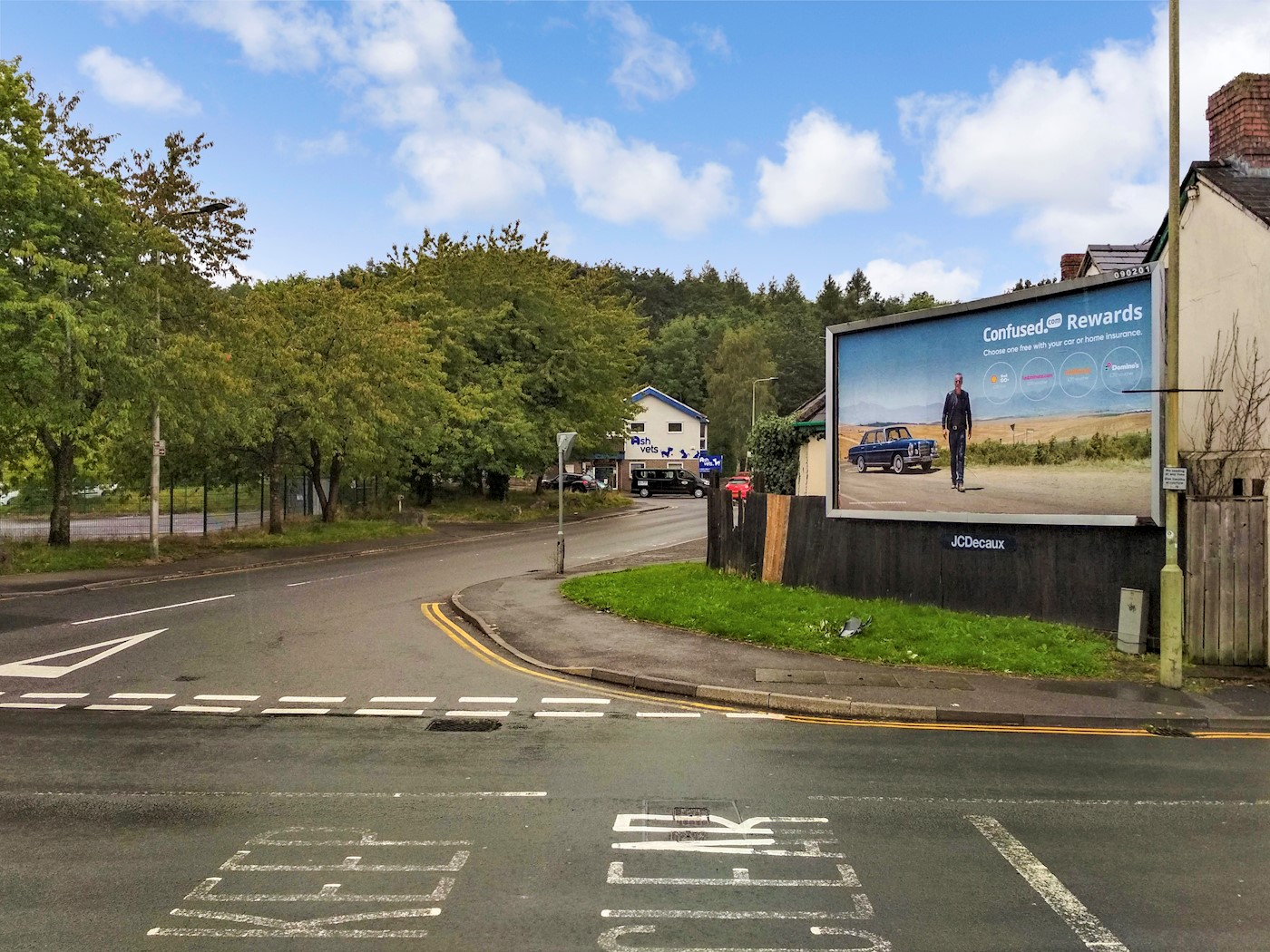 An irregular shaped site with a 48 sheet advertising hoarding.
