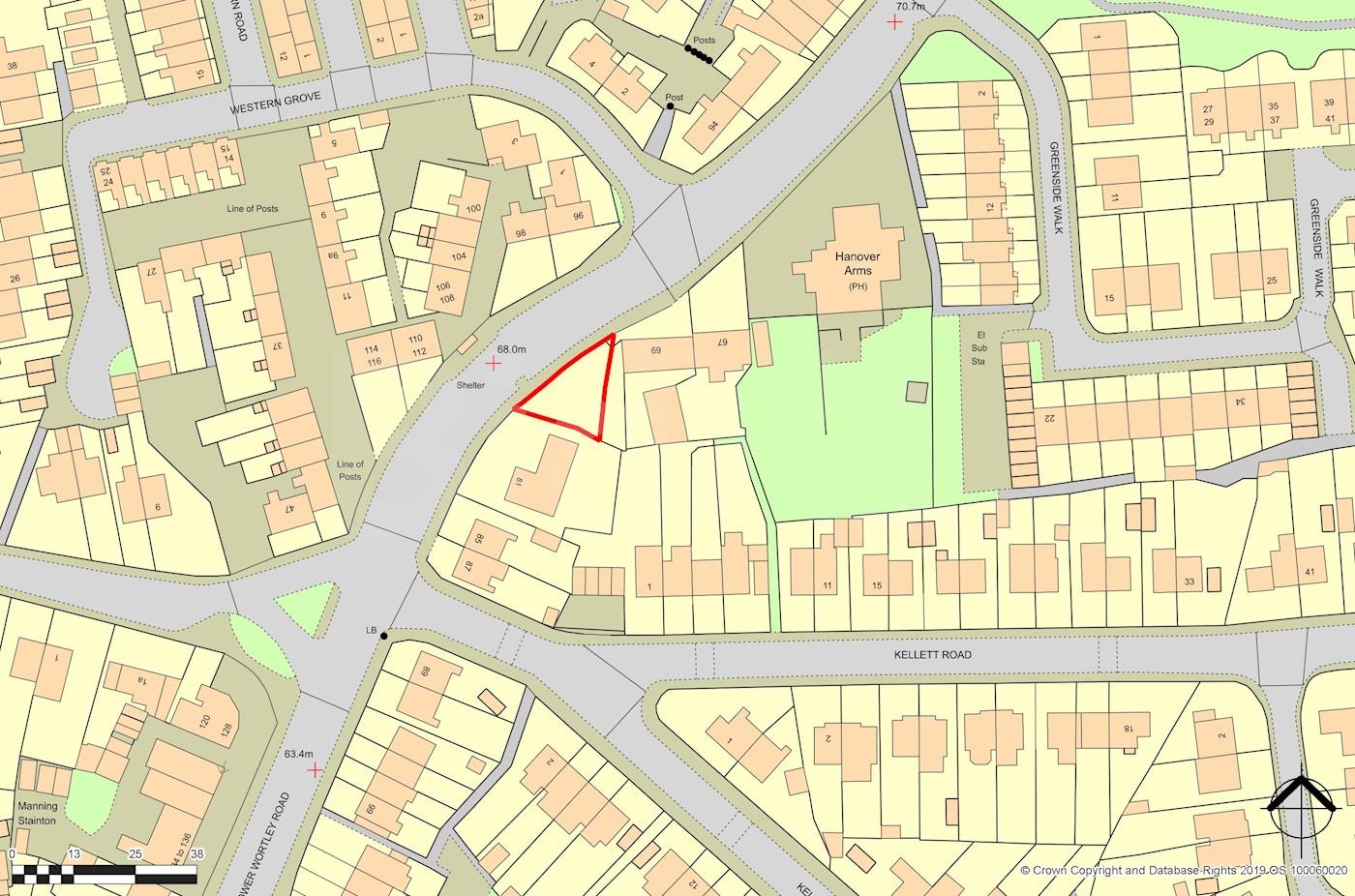 A triangular shaped site of about 201 sq m (2,164 sq ft) or 0.0201 hectares (0.0497 acres) that could be developed subject to obtaining any necessary consents.