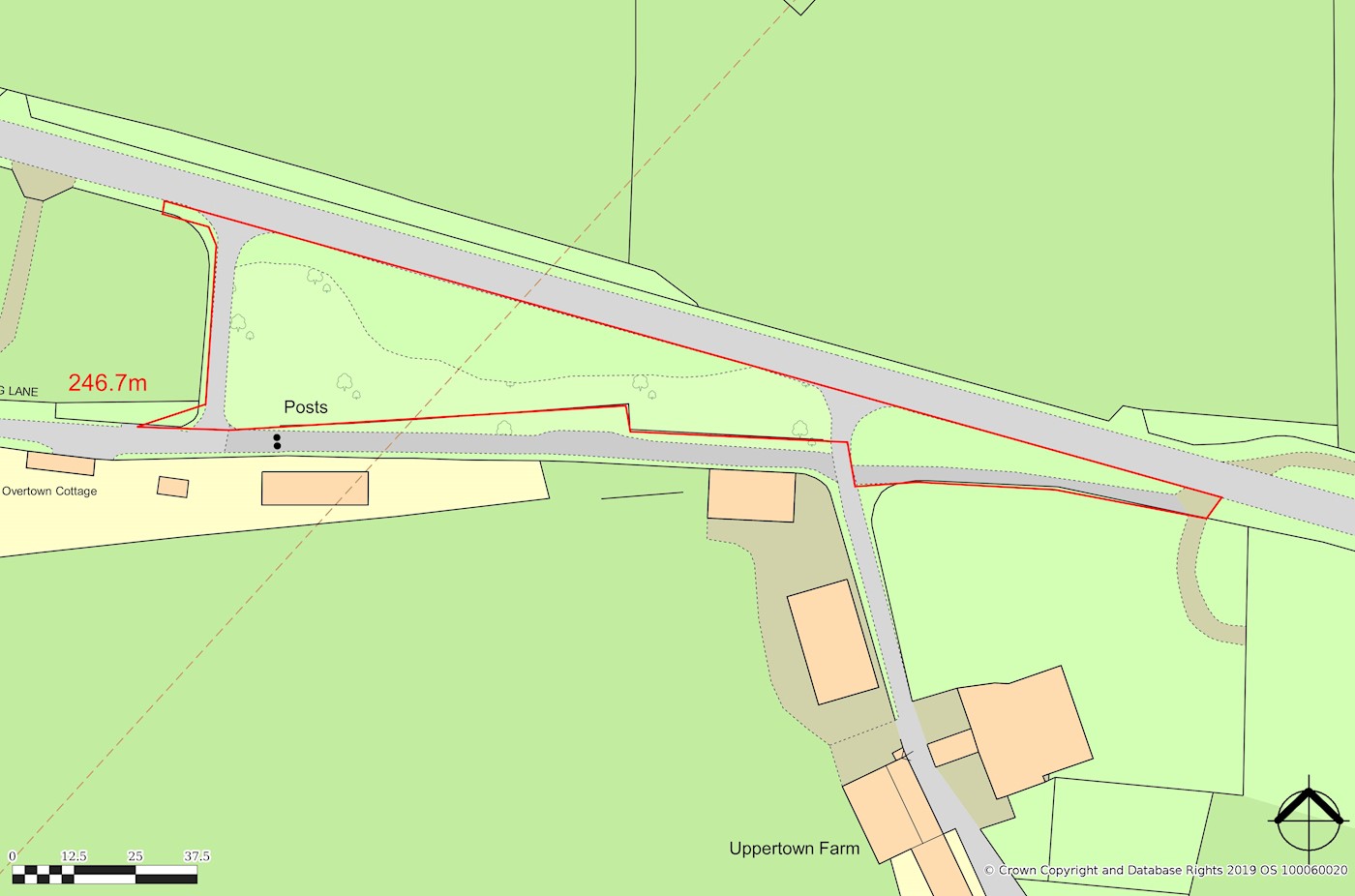 The property comprises a triangular area of wooded land with a good road frontage on one side and footpath along the rear side, and includes an access track over which Upper town Farm to the rear has a right of way. We are advised that the site extends to approximately 0.8 acres (0.32 hectares).